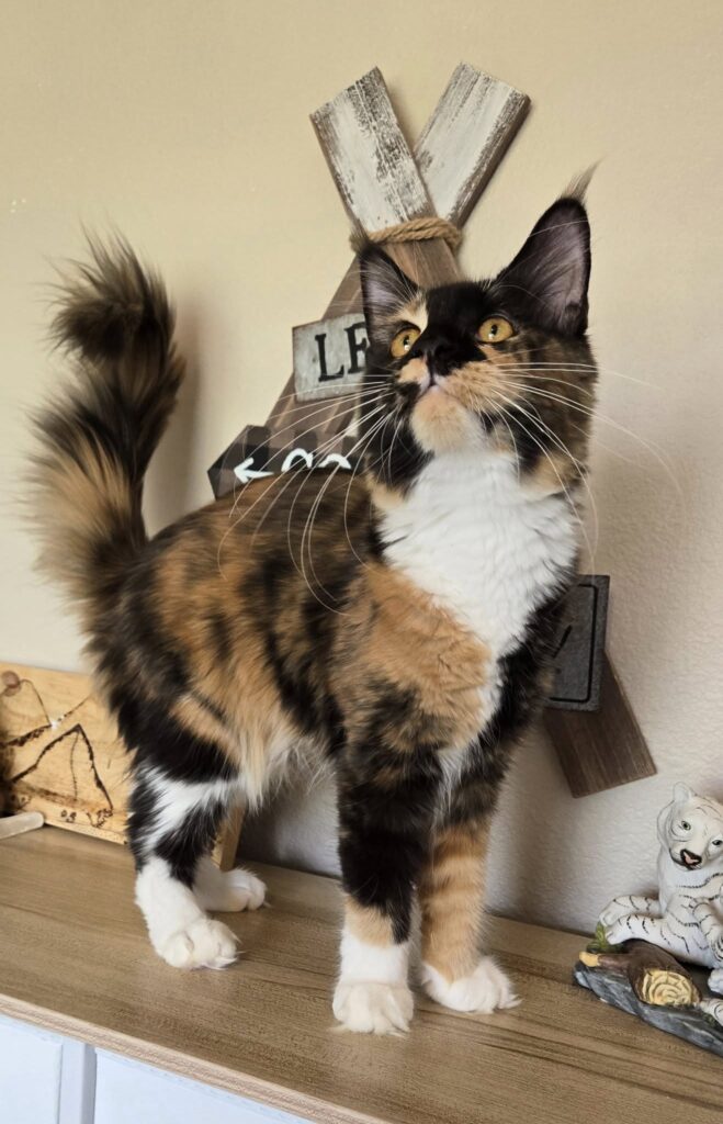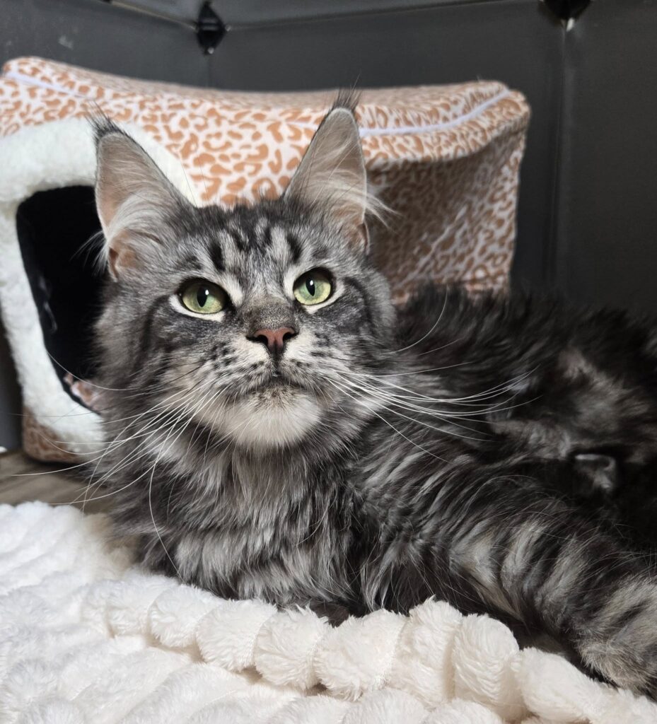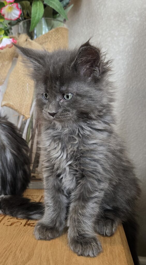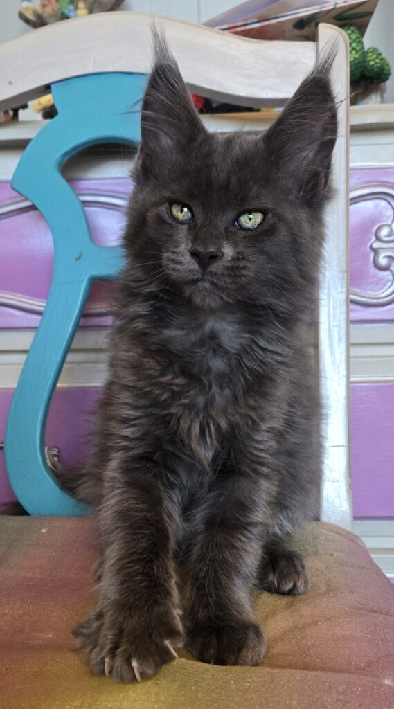 Aspen is a delightful girl!  Who is a beautiful black silver tabby.  She has excellent composition, and large structure.  She will capture your heart!   She is a calm observer who enjoys snuggling and playing.   I have no doubt she will be a wonderful queen in the future!