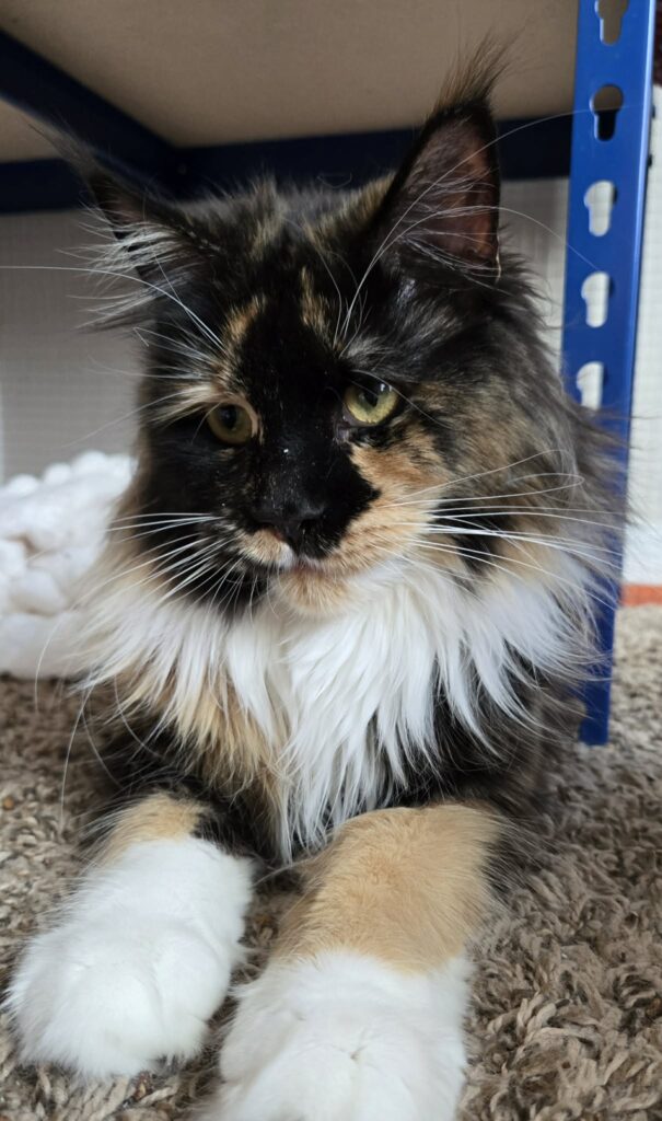 Savaya was born here at Emerald Ridge Farmstead.  She is a beautiful black smoke, out of Zoey and Phoenix.  She has excellent composition and character.  She is curious and enjoys playing. We cannot wait to watch her grow and become a future Queen!